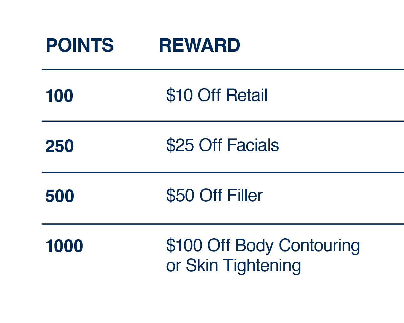 Every treatment brings you closer to your next reward. Here is how your loyalty adds up: